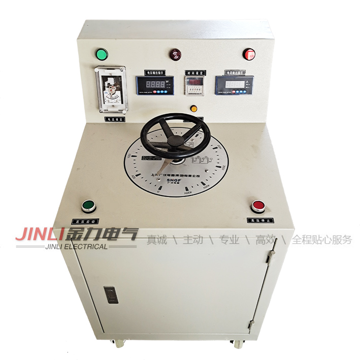 3. 合上電源開關(guān),按下送電按鈕接觸器吸合,調(diào)壓器帶電電源信號燈滅,送電信號燈亮,此時可以進行升壓試驗。