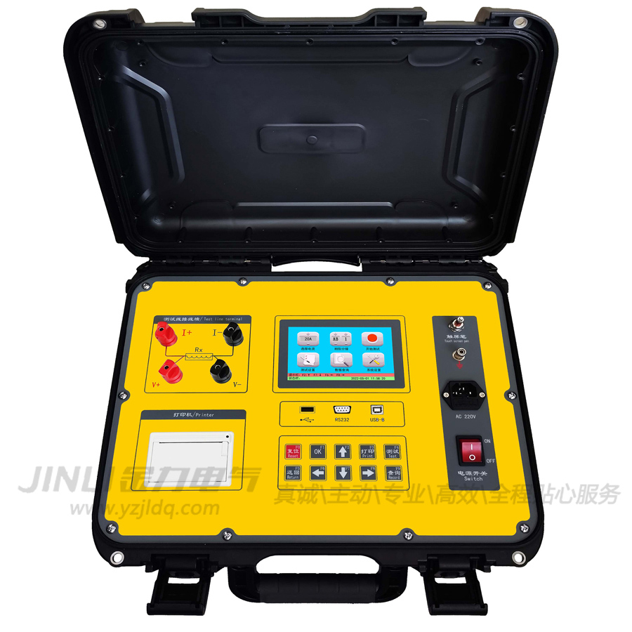 JL3008直流電阻測試儀20A(觸屏/按鍵兩用款)器采用全新電源技術,具有體積小、重量輕、輸出電流大、重復性好、抗干擾能力強、保護功能完善等特點。整機由高速單片機控制,自動化程度高,具有自動放電和放電報警功能。本儀器測試精度高,操作簡便,可實現變壓器直流電阻的快速測量。