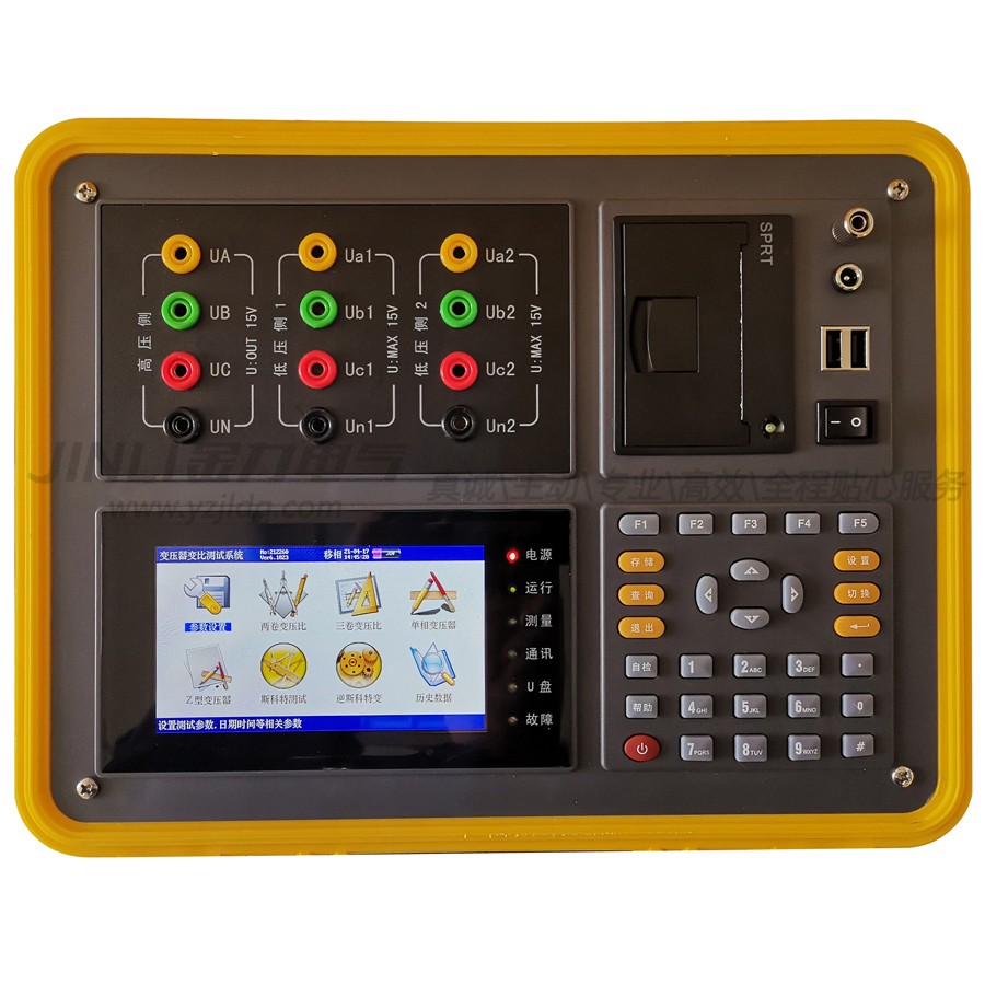 根據(jù)IEC及國家有關(guān)標(biāo)準(zhǔn)規(guī)定,在電力變壓器生產(chǎn)、用戶交接和檢修試驗(yàn)過程中,變壓器變比試驗(yàn)是必做的項(xiàng)目。這樣可有效監(jiān)督變壓器產(chǎn)品出廠及使用過程中的質(zhì)量,防止變壓器匝間短路,開路,連接錯誤,調(diào)壓開關(guān)內(nèi)部故障或接觸故障。我公司自主開發(fā)、研制生產(chǎn)的JL3010F多功能全自動變比測試儀(三卷變)除具有完全根據(jù)用戶的現(xiàn)場使用要求,操作簡便,功能完備,數(shù)據(jù)穩(wěn)定可靠的特點(diǎn)外還是國內(nèi)到目前為止第1款可以進(jìn)行全盲測(不知道被測變壓器的任何參數(shù)的情況下準(zhǔn)確測量變比值和組號,同時能準(zhǔn)確測量相角)的變比測試儀;具備兩套低壓繞組測量電路,可同時測量三卷變的高壓/中壓、高壓/低壓變比值和夾角(對于三卷變一次接線即可完成對各繞組間各分接檔位變比的測試,工作效率大大的提高);能適應(yīng)各種大中小型變壓器變比測試的需要(包括Z型變、整流變、電爐變、非整點(diǎn)的移相變、平衡變、斯科特及逆斯科特變壓器),是國內(nèi)變比測試中技術(shù)非常先進(jìn),測試項(xiàng)目非常完善,測量參數(shù)全面的變比測試儀。