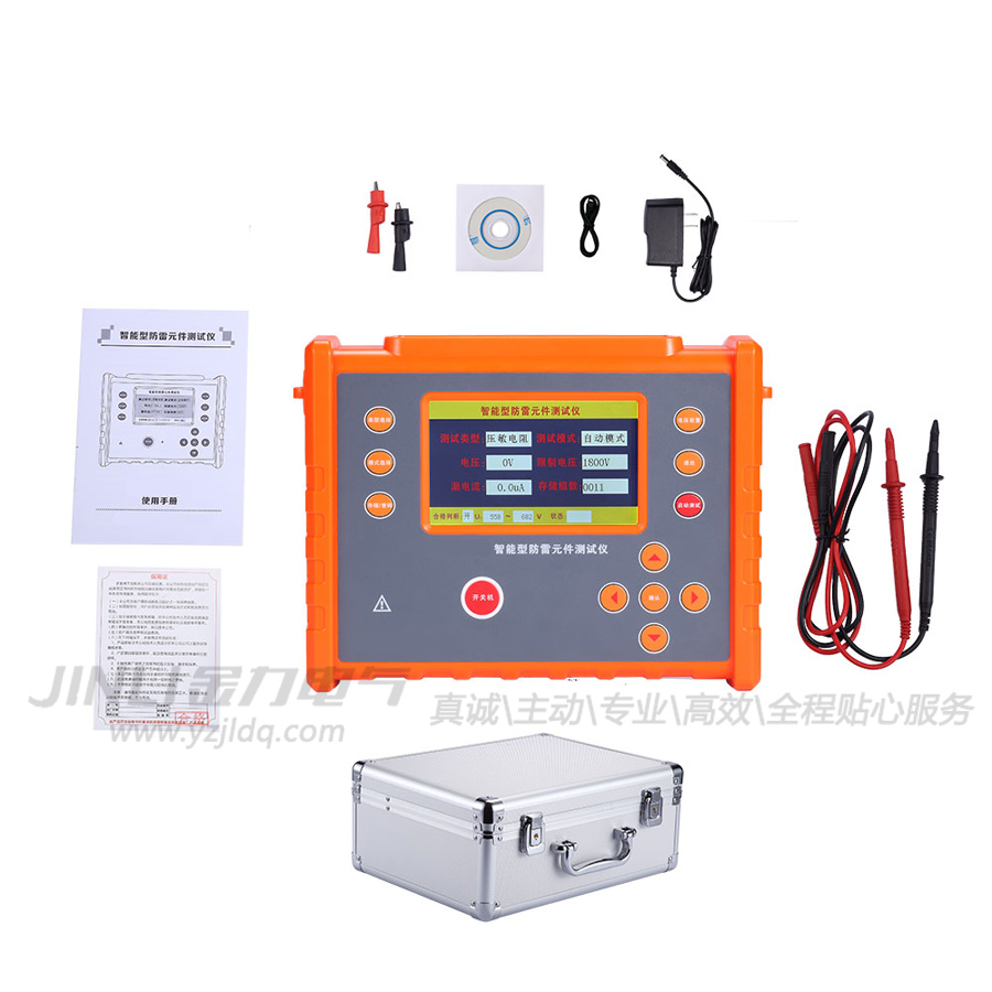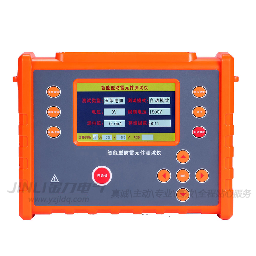 JL8007智能型防雷元件測試儀又名防雷元件測試儀、SPD現(xiàn)場測試儀,用于避雷器、防雷器、浪涌保護器、壓敏電阻、金屬陶瓷放電管、直空避雷管等性能測試的儀表。本儀表采用充電功能離線使用克服了傳統(tǒng)產(chǎn)品要插電使用不方便現(xiàn)場操作的缺點、電壓輸出2000V應(yīng)用范圍更加廣泛、使用高壓短路保護、自動放電功能、儀表可靠耐用。同時具備絕緣電阻測試功能、采用豪華大彩屏幕顯示、數(shù)據(jù)存儲、數(shù)據(jù)查閱、合格判斷、自動關(guān)機、USB數(shù)據(jù)上傳等功能。整機美觀,量程寬廣,分辨率高,操作便捷,攜帶方便,準(zhǔn)確、可靠、性能穩(wěn)定,抗干擾能力強。