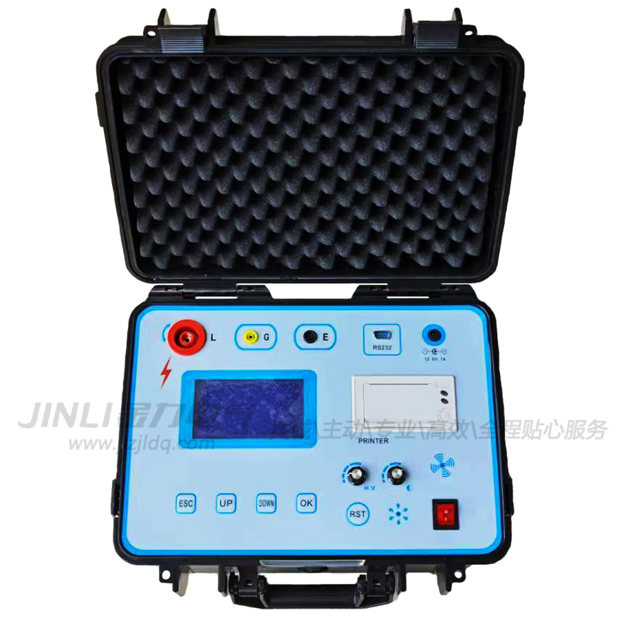 JL9001水內(nèi)冷發(fā)電機絕緣電阻測試儀、輸出電流大于20mA,輸出電壓有2500V、5000V兩種可選。儀器內(nèi)含高精度微電流測量系統(tǒng)、數(shù)字升壓系統(tǒng)。只需要用一條高壓線和一條信號線連接試品即可測量。測量自動進(jìn)行,結(jié)果由大屏幕液晶顯示,并可以將結(jié)果進(jìn)行存儲。