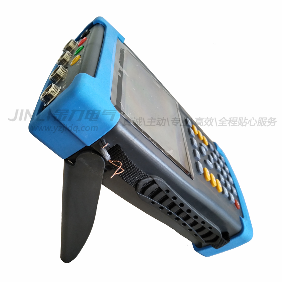 本機(jī)操作時中可以打開后部的支架放在桌面使用,亦可手持操作使用。為方便手持操作,本機(jī)可增加固定手持操作的緊固帶。手持操作時可以將手固定在儀器的左側(cè),保證了手持操作的方便靈活。